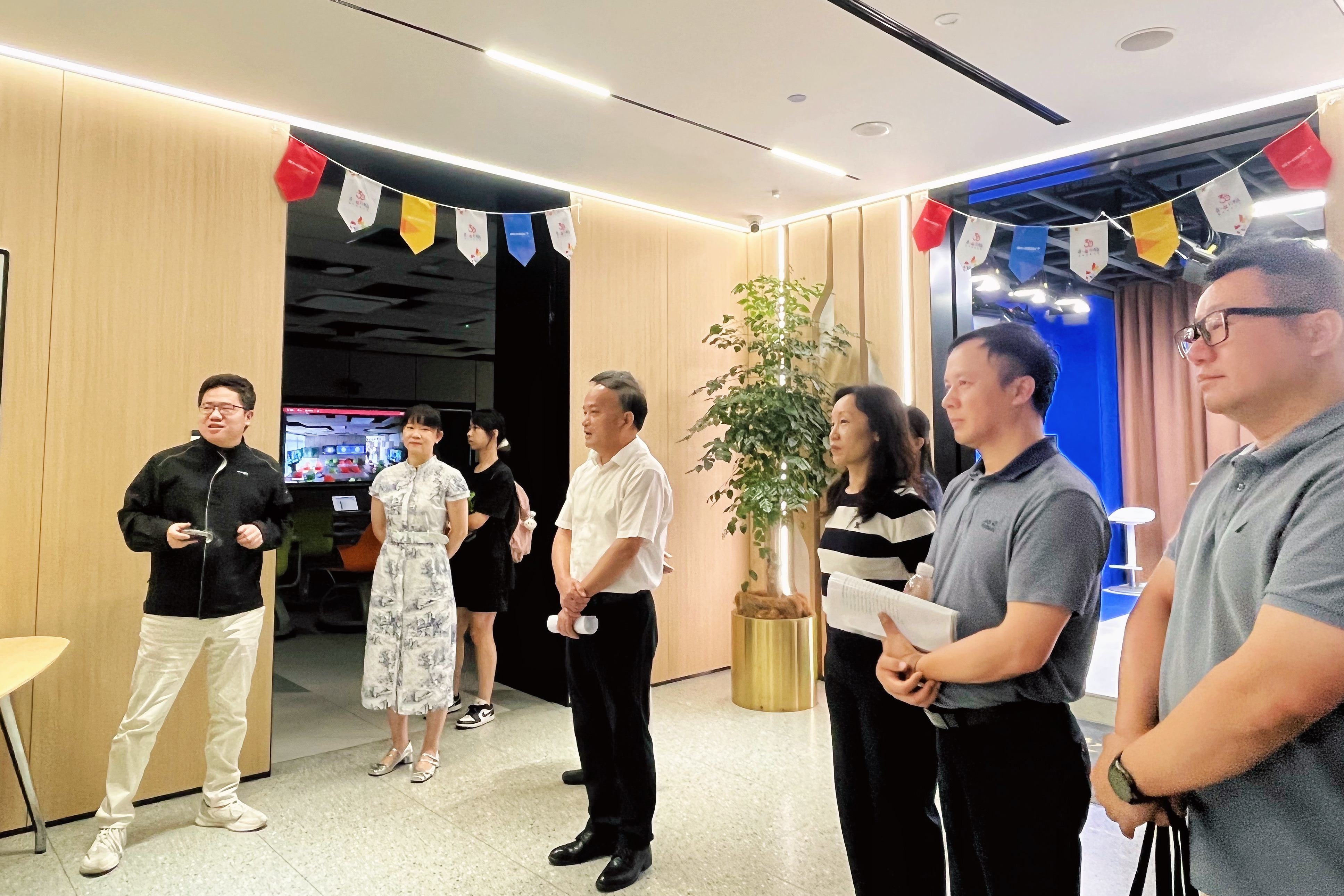公司董事楊家驊陪同來訪嘉賓參觀了金橋信息總部智慧空間,詳細了解了金橋的發(fā)展歷程、核心業(yè)務(wù)以及在智慧教育等領(lǐng)域的豐碩成果。公司副總、教衛(wèi)事業(yè)部&AI創(chuàng)新中心經(jīng)理馮蕾女士向嘉賓們系統(tǒng)介紹了金橋的歷史沿革、戰(zhàn)略布局及在教育信息化領(lǐng)域的創(chuàng)新實踐,為后續(xù)合作奠定了堅實基礎(chǔ)。