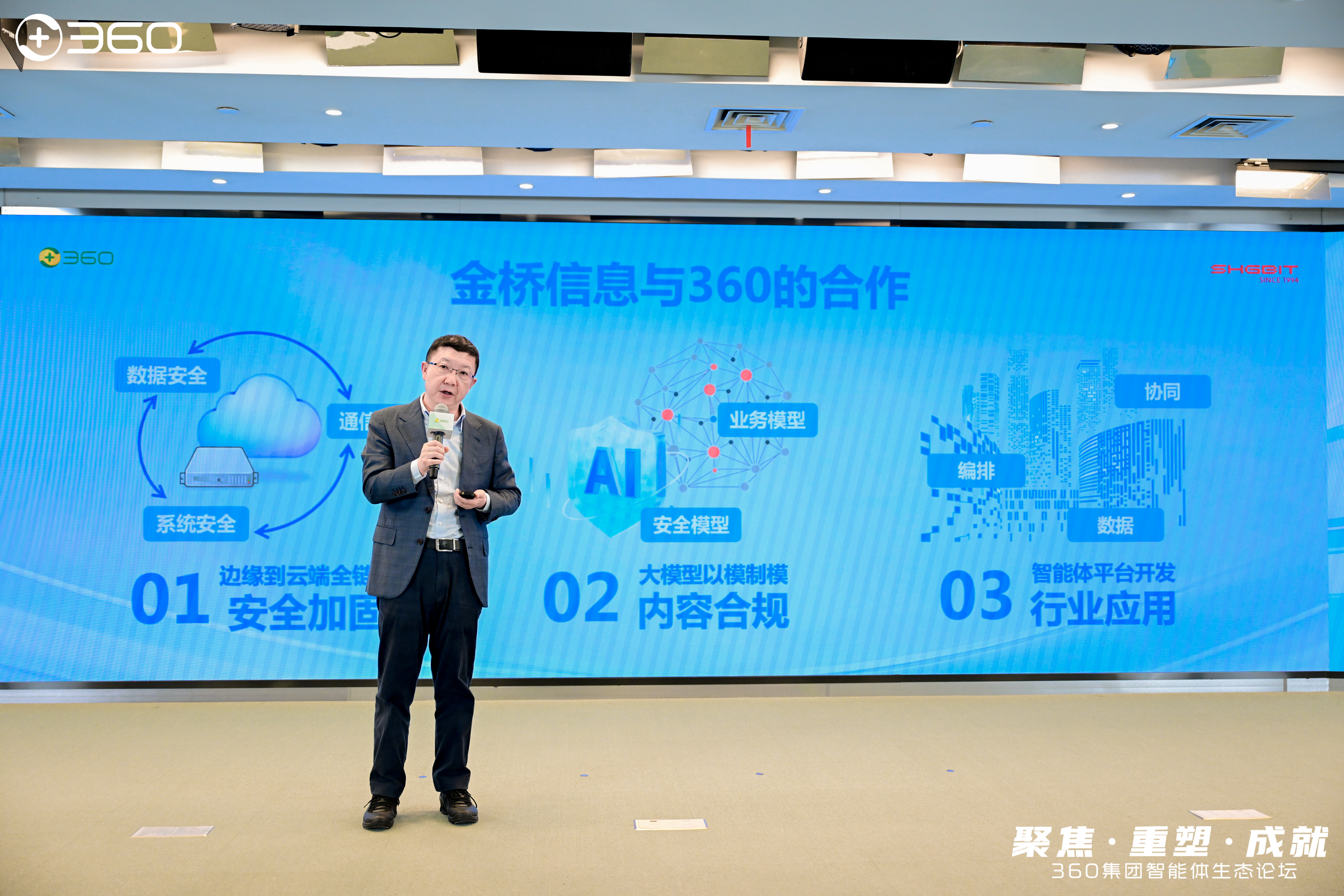 本次論壇見證了一系列重要合作成果的發布,包括全國首個私有化大模型標準、政企行業智能體研究報告等重要成果。金橋信息作為在智慧場景信息化領域深耕多年的數字化服務商,將持續發揮自身在行業場景理解與技術創新方面的優勢,與360及更多生態伙伴攜手,共同構建開放協同、安全可控的智能體發展生態,為數字中國建設貢獻產業力量。